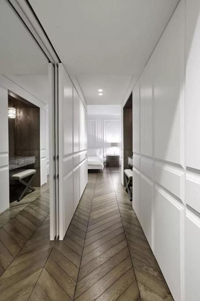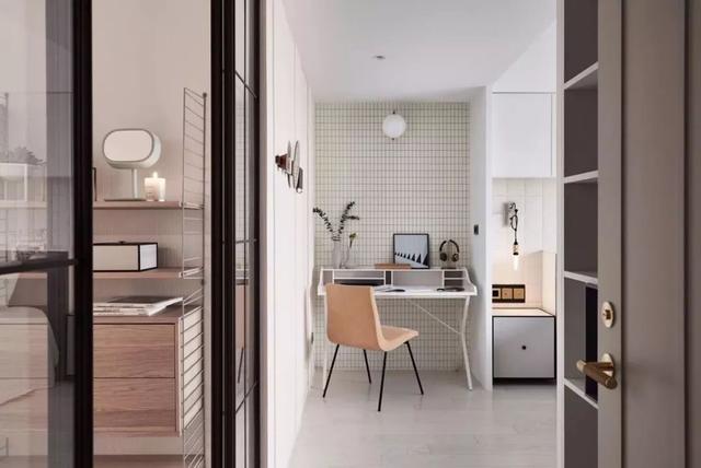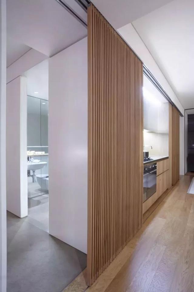 入墙式推拉门采用了隐藏式的设计,让整扇门的开关动作都借助墙体内的一道滑轨来完成,不占空间,轻盈灵活,因而在小户型空间中大受欢迎。