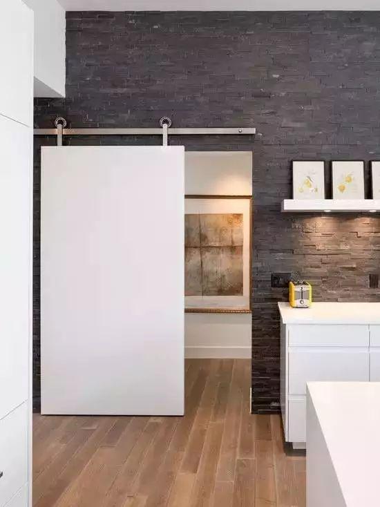 缺点:吊轨式推拉门没有门锁,与墙体的结合处也不是严丝合缝的,所以密封性和隔音效果都比较差,不适用于卧室,多出现在厨房、客厅、衣帽间、储藏室等流动性较高的区域。