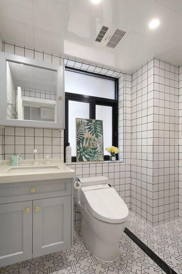 玄关六边形地砖设计很有活力感,玄关柜利用挂衣服空出的空间做了小小的换鞋卡座,实用美观。