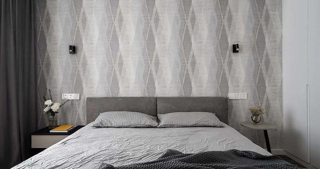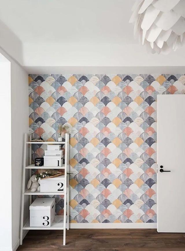 次卧墙面张贴壁纸,成为了家里唯一的一面彩色墙,这个空间也是以后作为儿童房来使用的。