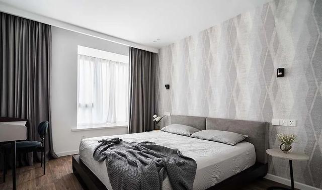 主卧延续客厅的风格,低调柔和的配色,打造更加安逸平和的睡眠环境。