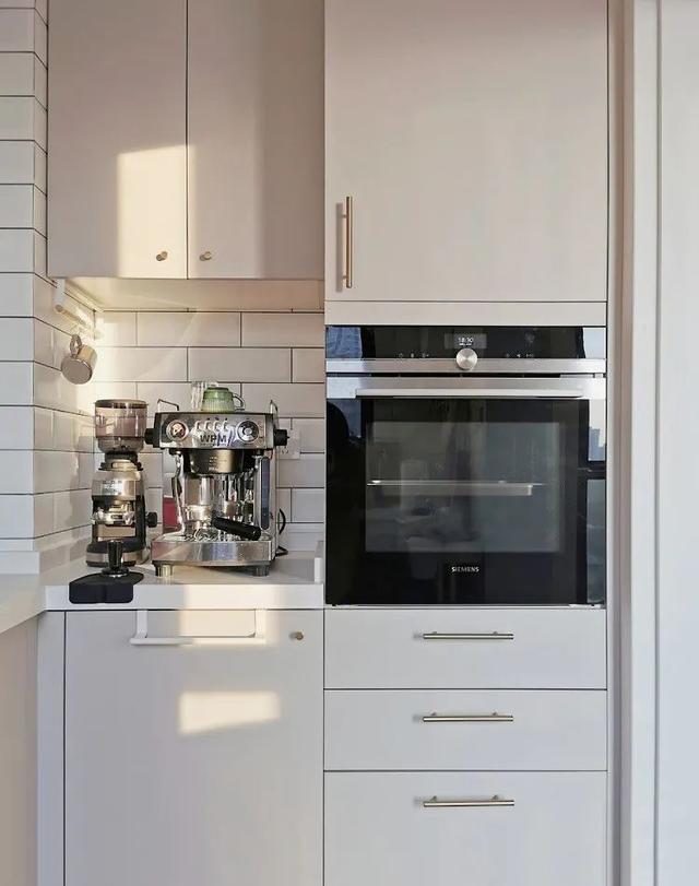 阳台大面积的白色柜体,为空间提供了丰富的收纳和展示功能,实用又美观。