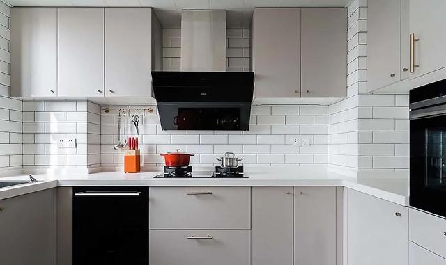 没有过多着墨的厨房,遍布的是经典黑白灰,简约、理性,少许金色,点缀突出精致的品位。