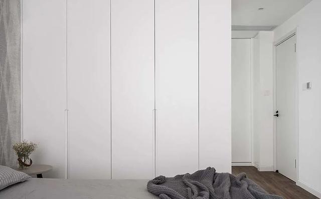 在原户型上缩小主卫面积,利用扩大的空间放下了整排的至顶衣柜。