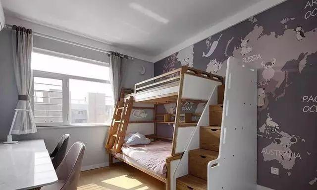 儿童房里的颜色虽然并不惊艳,却衬托出那抹跳跃的阳光是那样的灵动。有趣的壁纸做为背景,也不失儿童房的童真。