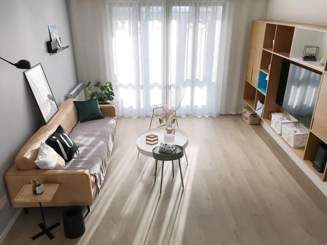 和书房相对的就是客厅空间,书房和客厅之间不做隔断,看起来更加宽敞。收纳款的电视背景墙是我非常喜欢的,很实用,而且设计好了,颜值也高。