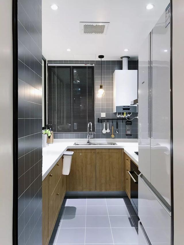 厨房内部的空间不算很宽敞,特别是好做了U字型的橱柜,只留下了方便一人做菜转身的空间,但好处就是储物空间变多了,不用担心东西放不下。