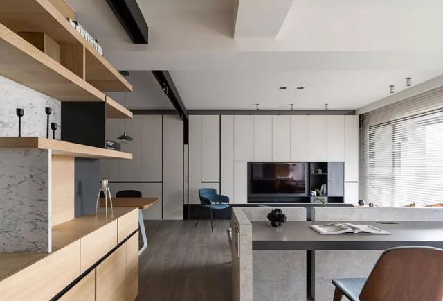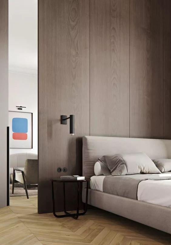 最适合护墙板背景的设计就是满铺,整面铺装护墙板或者和其他材质相结合。