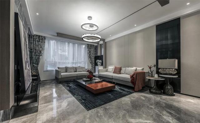 ▲客厅空间比较偏向现代风格,地面是仿大理石灰色的地砖,搭配整体灰色调的空间,显得格外的时尚优雅而大方自然。