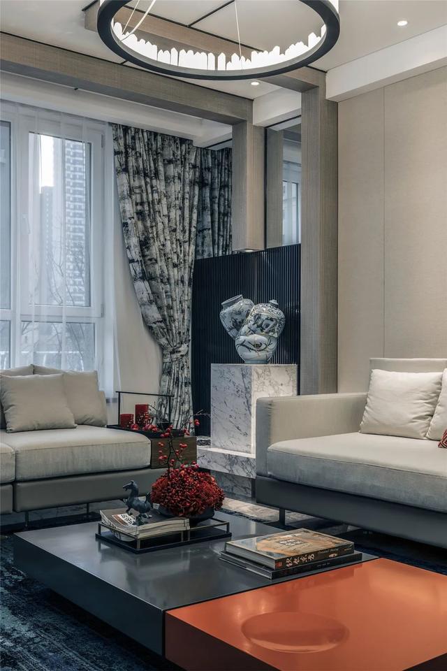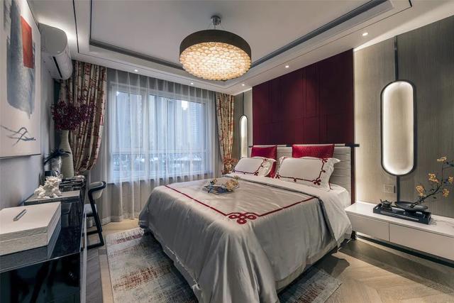 125㎡的现代中式风格,稳重大方,主卧的那一抹红绝了!