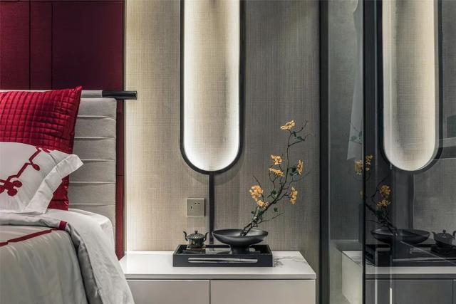 ▲床头柜上禅意优雅的盆景装饰,也让空间显得更加儒雅端庄而高级。