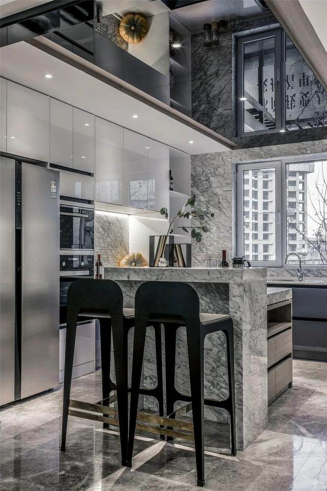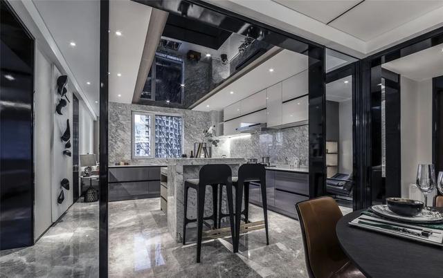 ▲厨房空间相对宽裕,以玻璃推拉隔断,里面布置中岛台,围绕着中岛台布置的厨房操作台,带来一个多样化的烹饪体验。一家人在厨房里其乐融融的生活,无论是中餐还是西餐,都能得心应手。