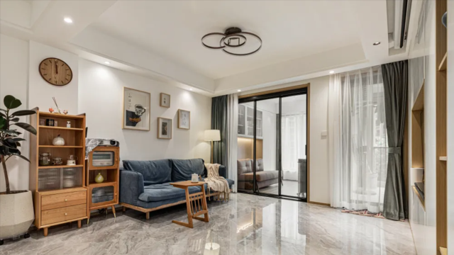 原客厅狭小,采光不足。设计师改变了主卧和客厅的隔墙位置,保证客厅的空间和采光。
