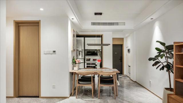 餐厅设置在厨房出口处,充分利用空间,而且缩短餐厨距离,动线更流畅。