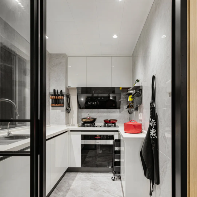 2、改变厨房的开门方向,增加了空间的光线和动线的连贯性;
