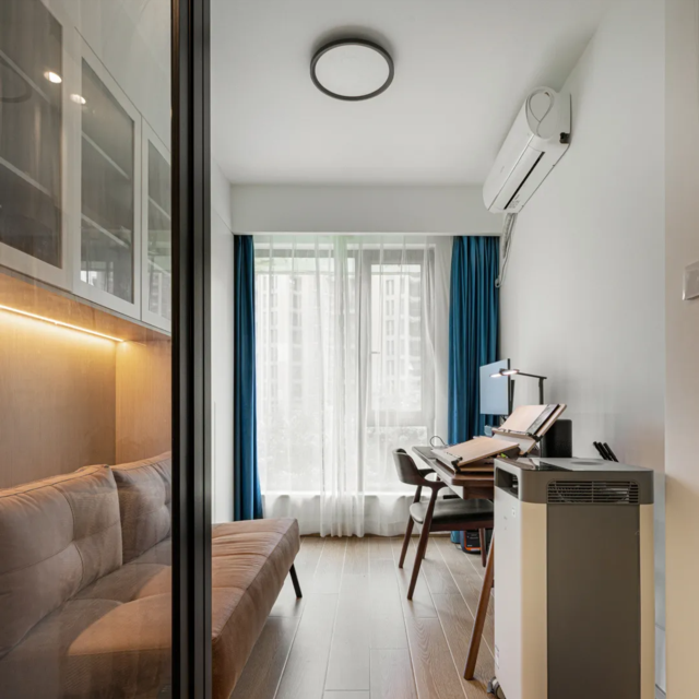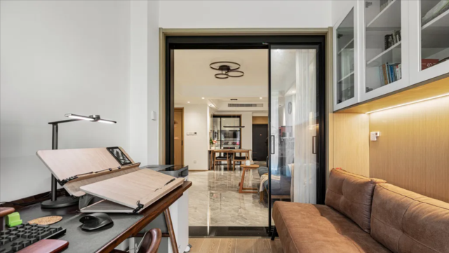 阳台改为书房,三联动的玻璃移门引入采光,空间通透明亮又大气。