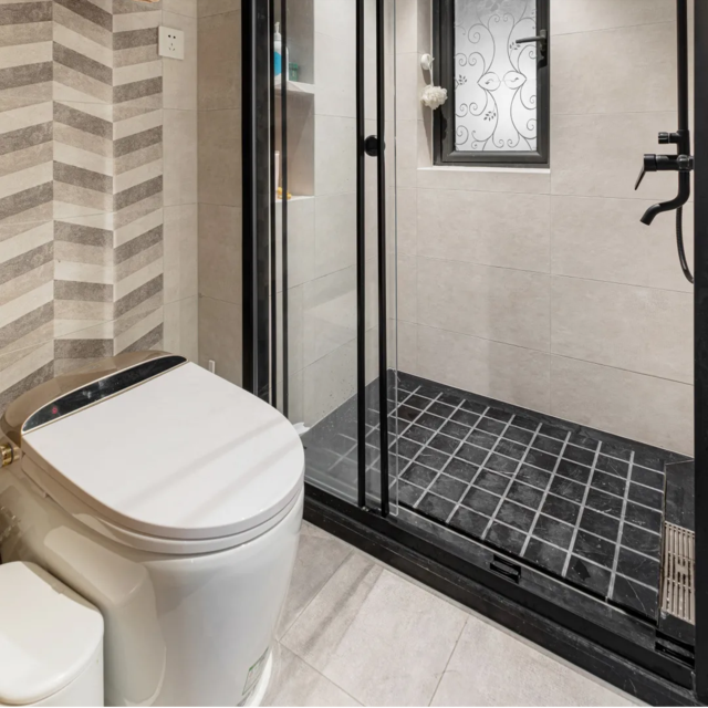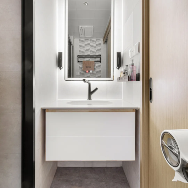 干湿分离提高卫生间的使用效率,黑色门框增加空间的厚重感,高级又时尚。
