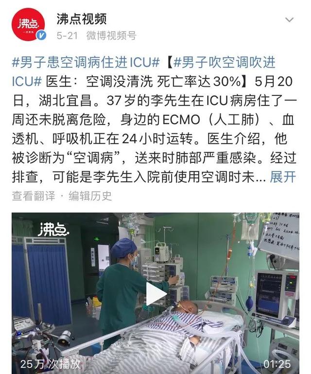 之前湖北一男子就因吹未经清洗的空调