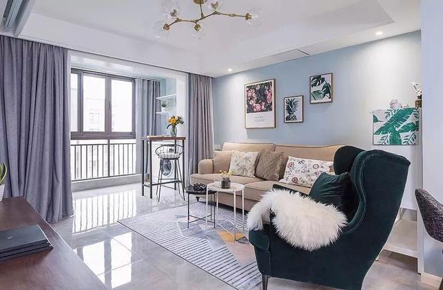 最喜欢的还是这个客厅,以蓝色为主的北欧风空间中,搭配了沉稳的沙发和单椅,给这个小清新的空间带来了一些大气感。