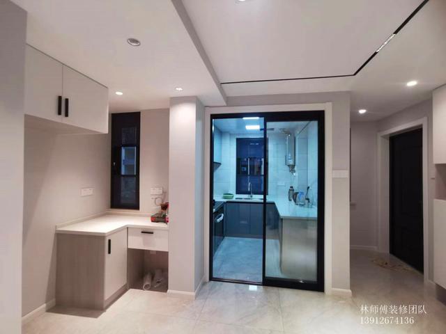 厨房门口就是餐厅,传菜很便利。餐厅边有矮柜,辅助餐厅的收纳,冰箱也是安排在餐边柜这里,避免厨房的油烟。