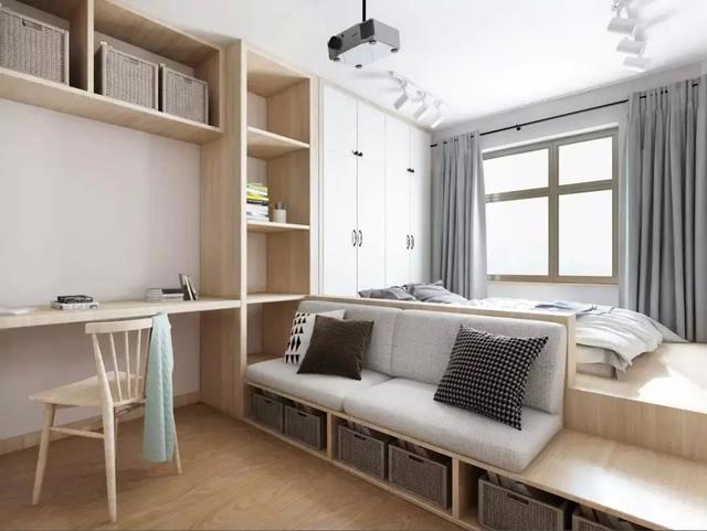 根据自身的居住需求和房间的使用功能,合理规划空间,定制组合型衣柜,既能保证实用又利用空间。常见组合有:学习桌+衣柜+书柜、化妆台+衣柜+床头柜。
