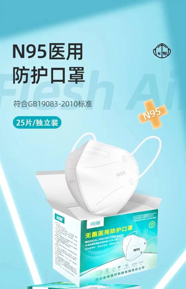 【商品包装】N95无菌医用防护口罩(每只独立塑封包装,外有彩盒,一盒25只)