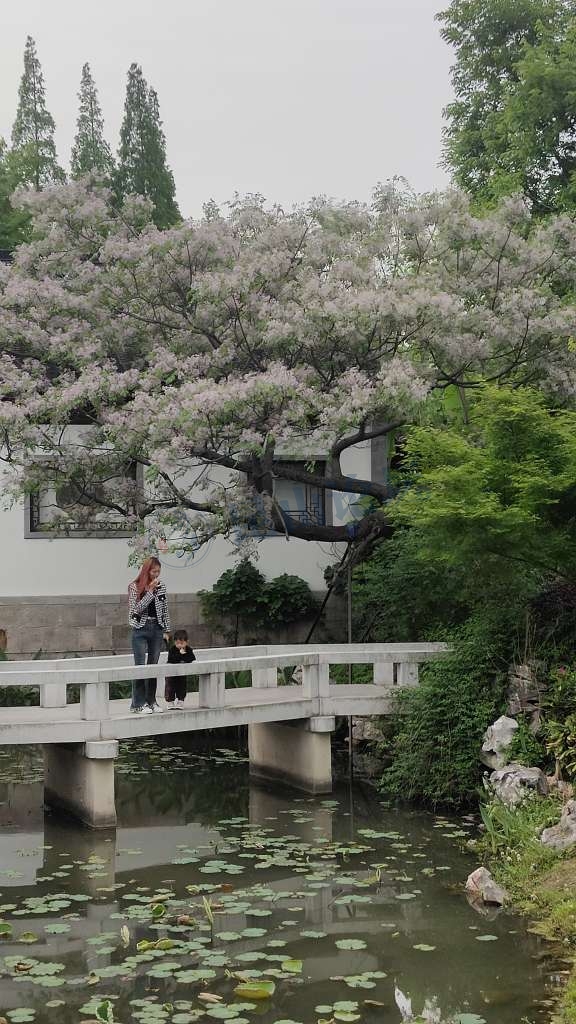 如果穿着汉服站在亭林公园门口的这棵苦楝树下面画面一定很美!