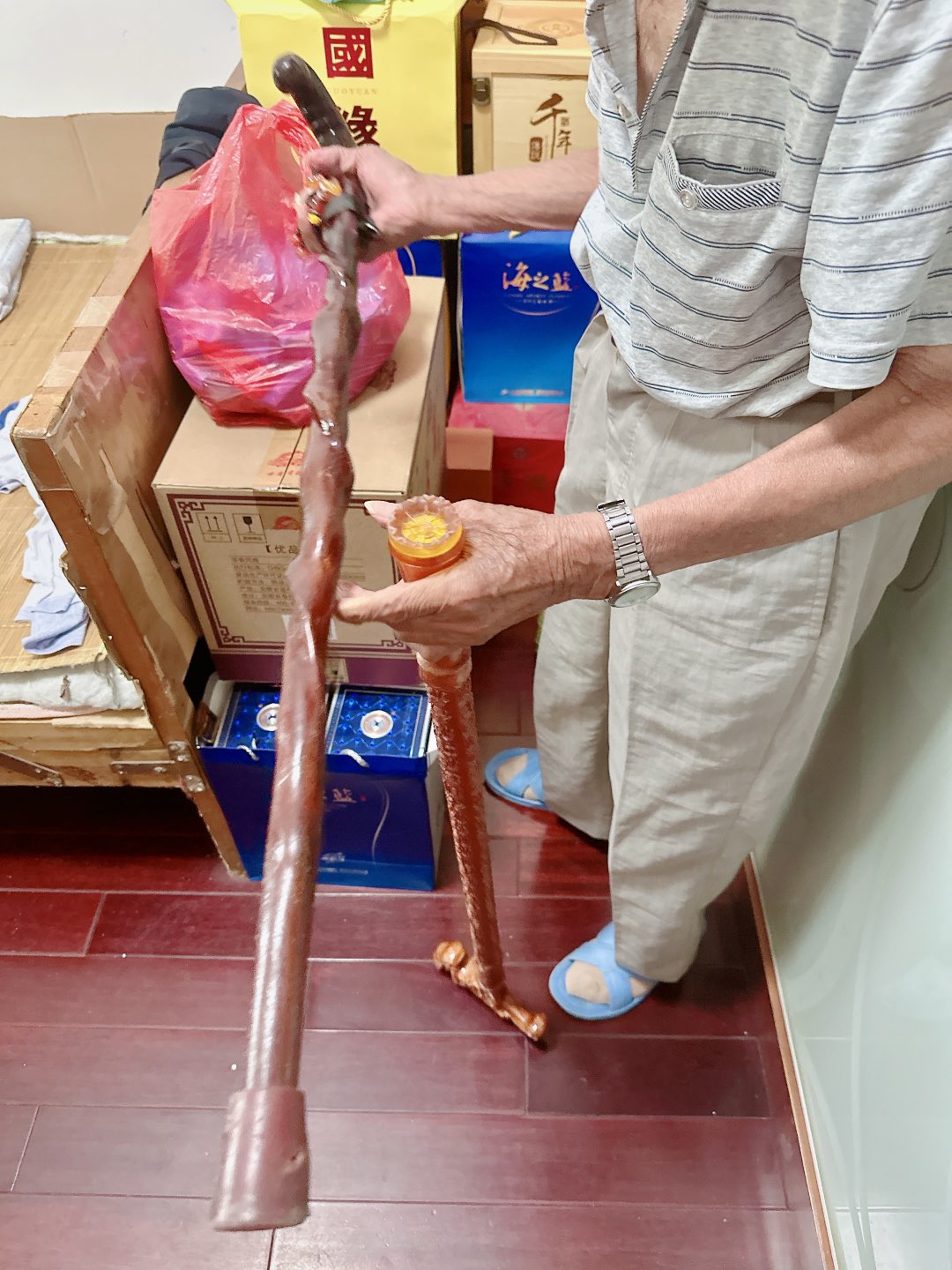爷爷还拿出原来我买的那根来比较,新的这跟比原来的长,说原来的用起来高度合适,那就哪根顺手用哪根啦!