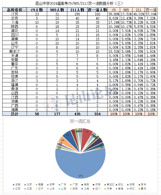 昆山中学2024届高考C9/985/211/双一流数据分析(三)