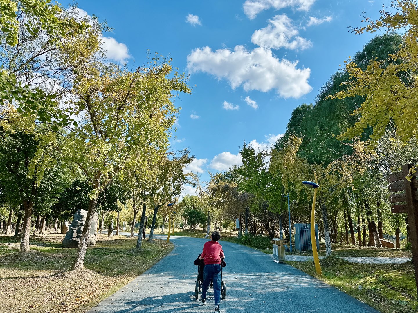 吃完羊肉面上我大伯家接爷爷去体育公园走走。今天天气真的太好了,天空的云朵也超级好看的。