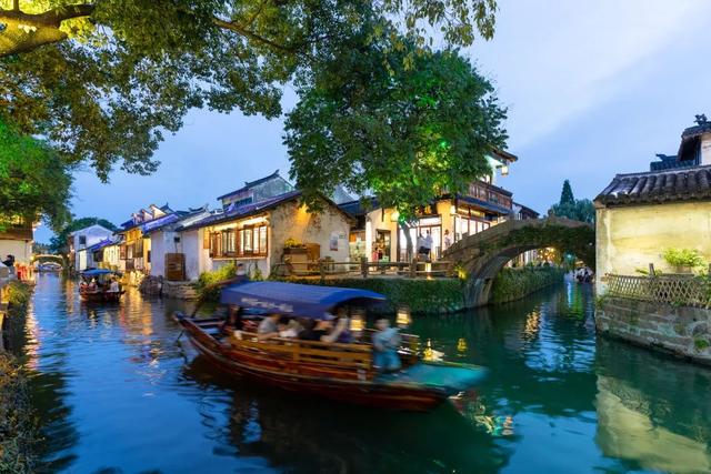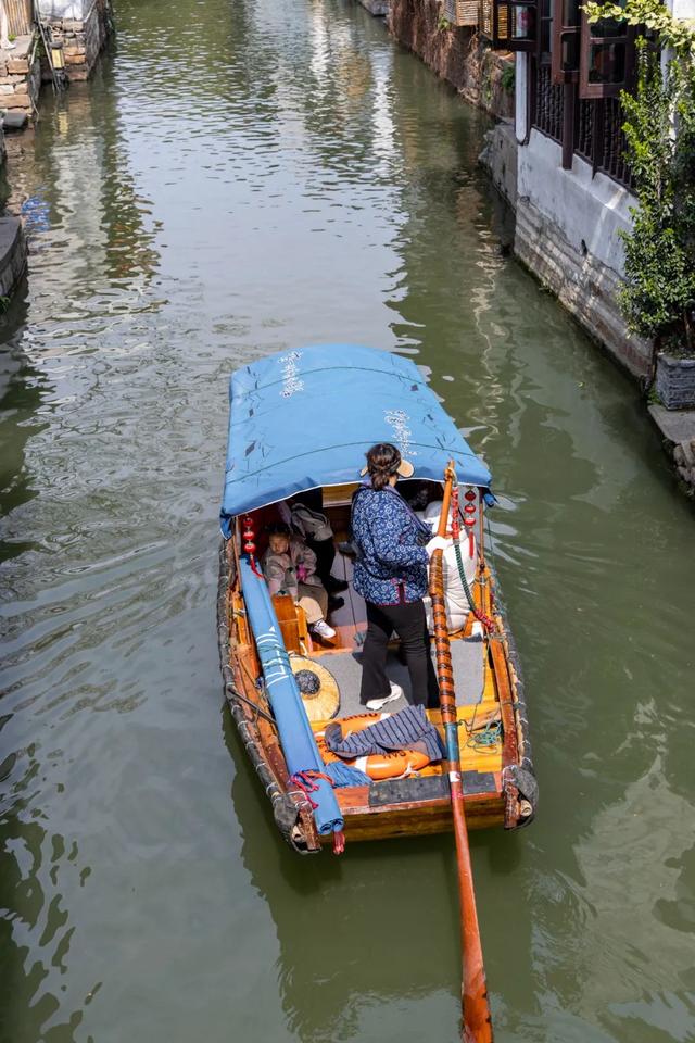 来周庄怎能不体验游船?坐上摇橹船,惬意~