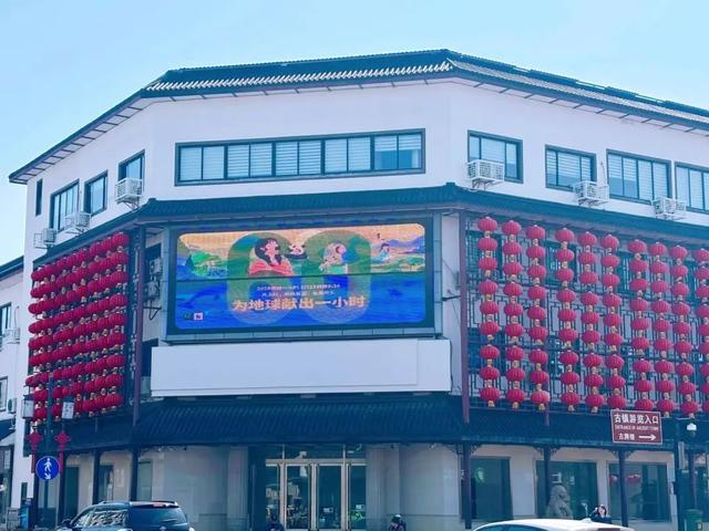 活动期间,周庄镇通过全域覆盖的公益宣传深化环保影响力。古镇十字路口、居民小区等区域的LED电子屏循环播放“地球一小时”主题海报,以视觉语言呼吁“与自然共生”,倡议居民、社区、企业积极参与。这场“全镇总动员”不仅让环保理念深入人心,更展现了周庄作为生态文旅标杆的担当。