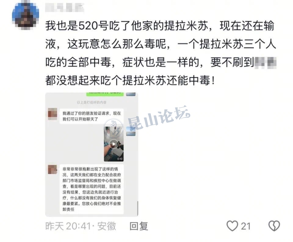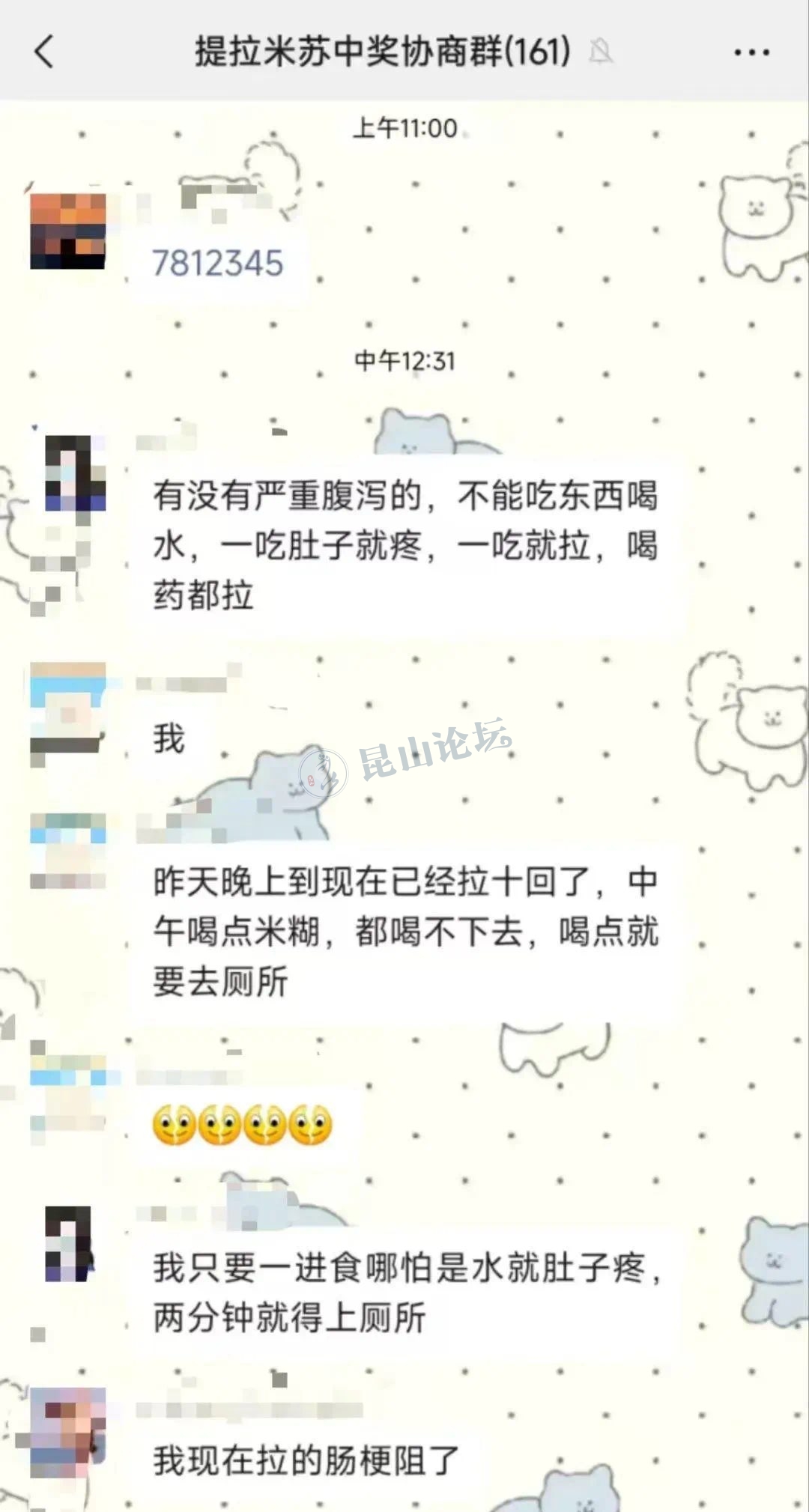 起初,大家都没往提拉米苏上想,以为只是普通的肠胃不适。但当他们进了医院,医生就直接问他们:是不是吃了提拉米苏?这时大家才知道,医院的肠胃科已经住满了。已经统计了两页纸的中毒者。不止这一家医院,另一家医院也是人满为患。有人组建了维权群,里面的人数高达161人。