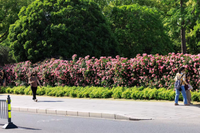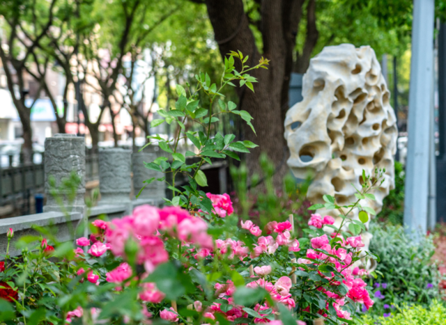 月季花,被誉为“花中皇后”,它既能攀上高墙成就“花瀑布”,也能屈身阳台小盆开成“爆花机器”。一株月季,串起了私人庭院与公共空间的审美共鸣,也让人在钢筋水泥中寻得片刻的诗意栖居。这个季节的昆城,公园、绿地、街边转角,都能找到这个“顶流花”。
