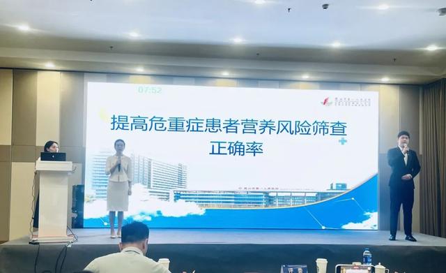 本次参赛的项目是重症医学科护理团队《提高危重患者营养风险筛查正确率》,胡娟、陶瀚辉、王艳参加现场汇报。