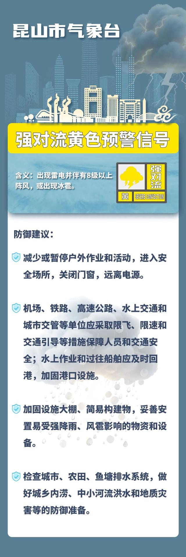 注意!昆山市气象台发布强对流黄色预警!