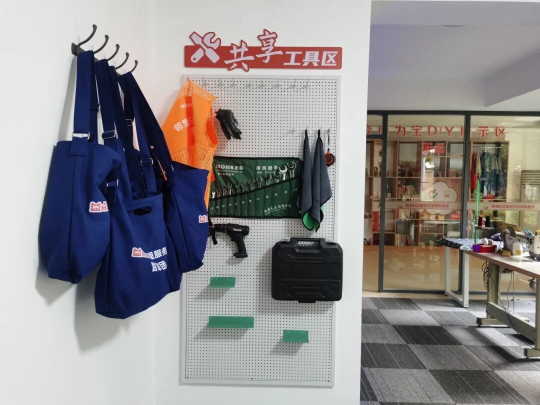 东方国际广场小区内有公寓楼与居民楼共600多户,钟点保洁、家电维修、缝缝补补等家庭生活服务需求日益增多。结合辖区实际,秧浦社区将原有150平方米的党群服务阵地提档升级,开发打造东方国际广场党群服务点2.0版本,以居民家庭服务需求为小切口,建立“益满方”邻里驿站。布置具有党建引领、社会参与、商业服务等多功能于一体的家庭服务场景,常态化为居民提供家门口的“一站式”家政类生活服务,打破了社区服务的局限性与物业服务的单一性。在邻里驿站的一角还布置了共享工具区,个别居民主动把家中不常用的扳手、打气筒、电钻等设备拿出来共享,既释放了房屋空间,又便利了居民邻里。