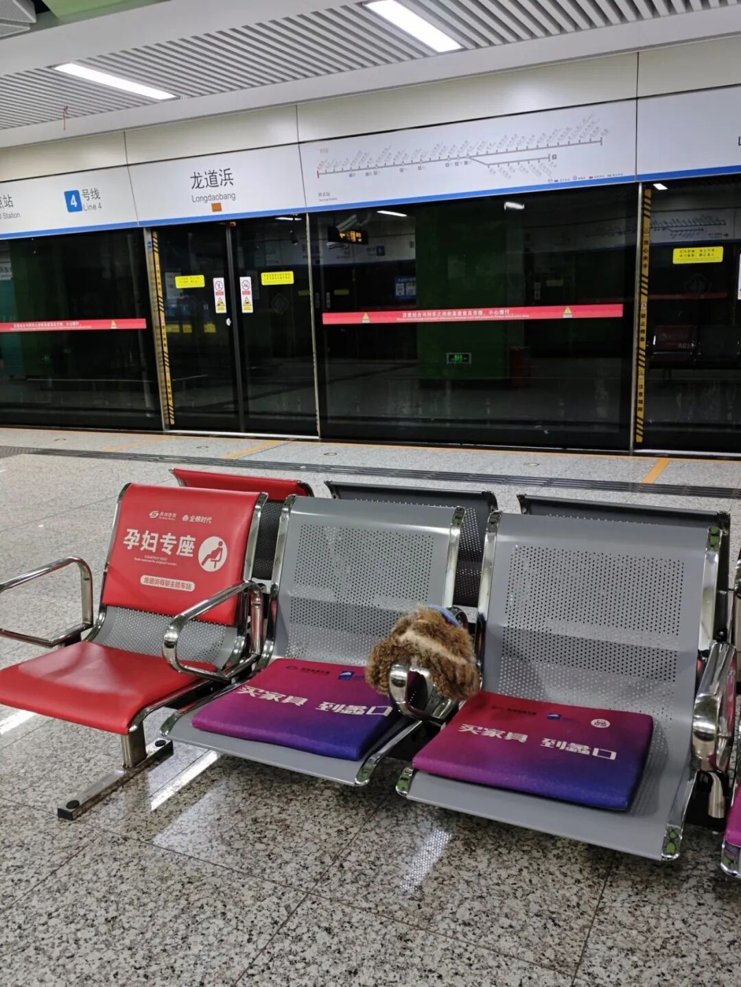 在东方之门站站台座椅上