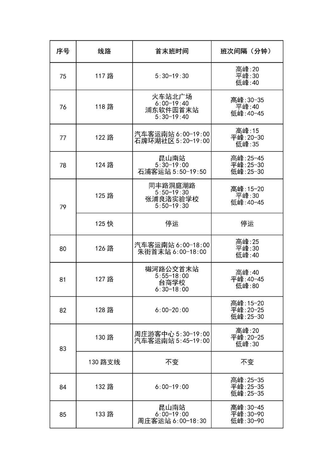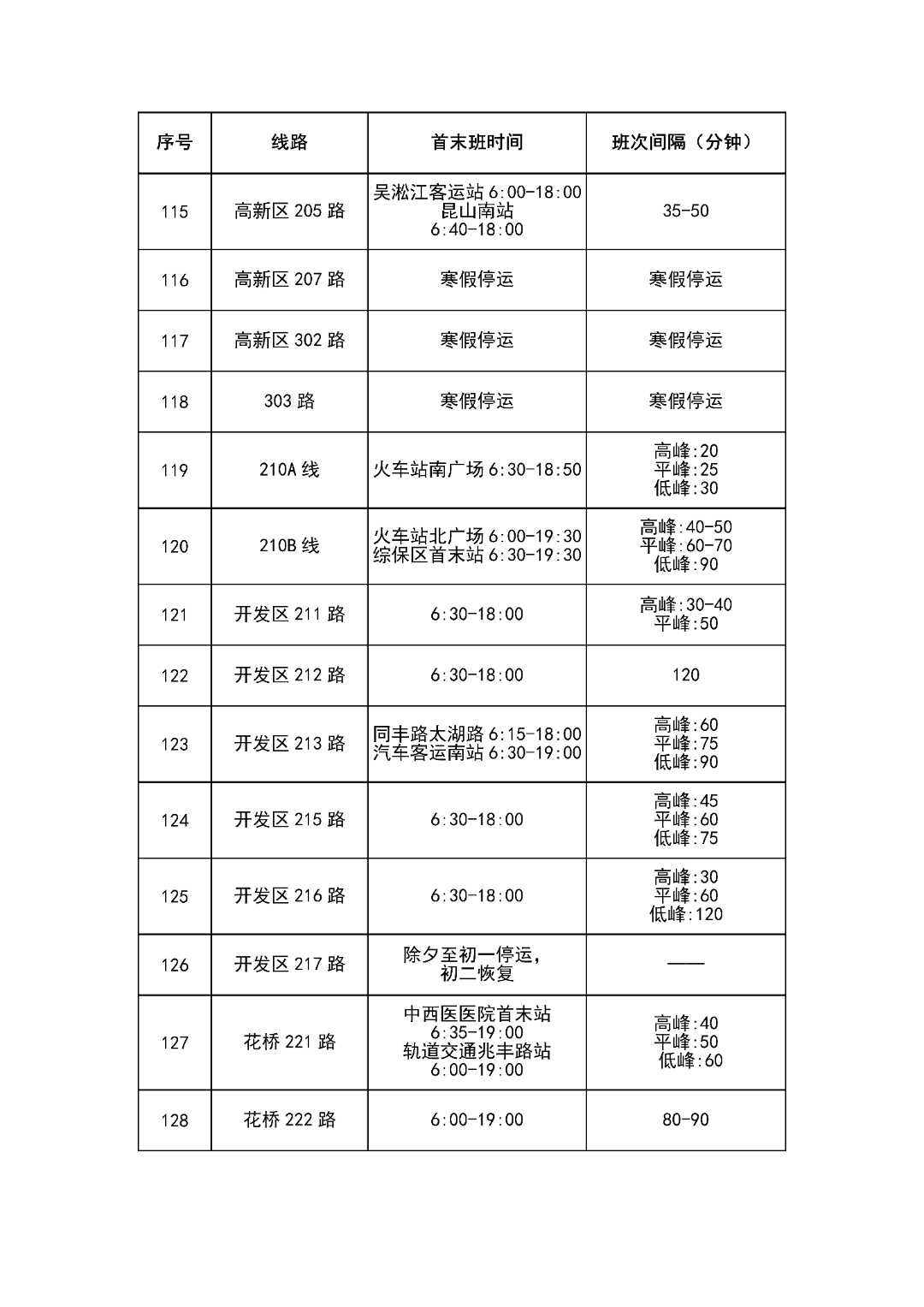 服务时间调整、班次缩减、网约公交均于初五(2月21日)起恢复正常。巴城立臻购物专线和锦溪立讯购物专线初五起停运。