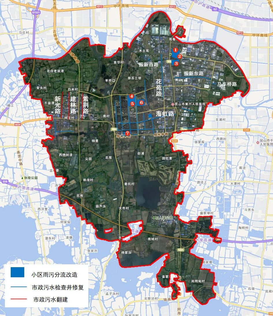 ▲昆山市城市污水收集处理设施改造工程(张浦镇标段)一览图