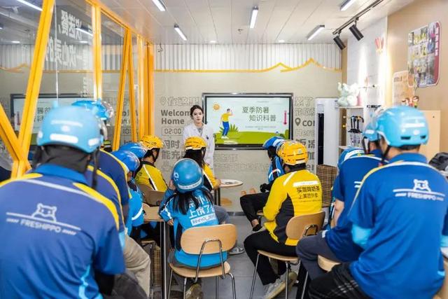 此外,驿站还会不定期开展特色服务,一方面组织“送清凉”等关怀活动,传递暖心支持;另一方面开设劳动权益保障、行车安全等主题知识讲座,助力骑手提升权益认知与安全意识。同时,部分驿站还会同步发布暖“新”商户优惠政策及就业岗位信息,为新业态新就业群体提供多维度、全方位的服务保障。