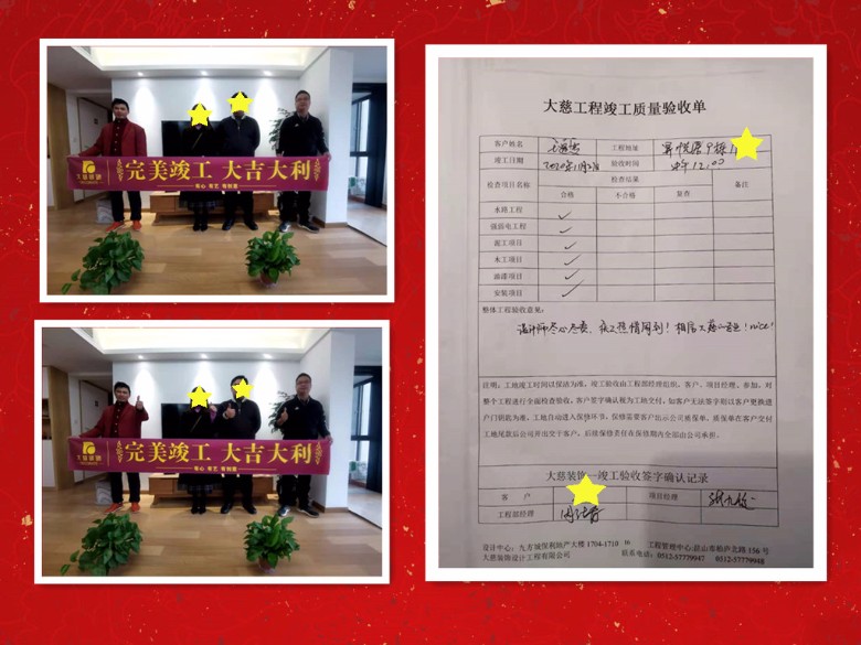2020年11月28日,大慈装饰全体员工热烈祝贺昇悦居的业主竣工大吉,感谢您一路走来对我们工作的认可与信任,今天大慈的设计师、工程及家居团队交出一份满意的答卷。