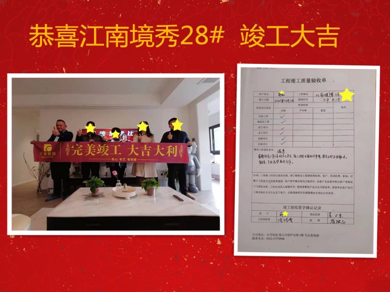 恭喜江南境秀28栋 的业主竣工大吉!
