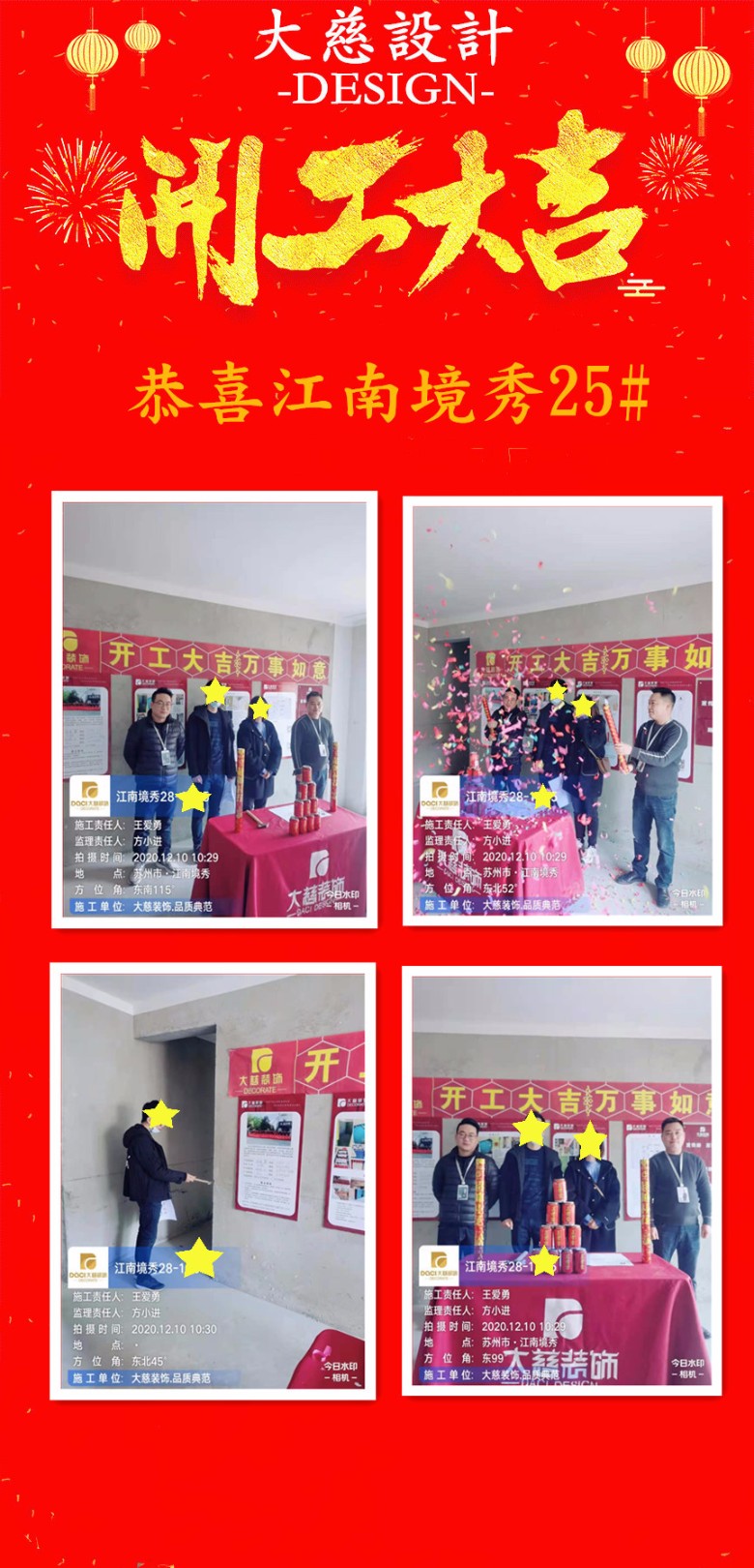 2020年12月6日,大慈装饰全体员工热烈祝贺业主竣工大吉!