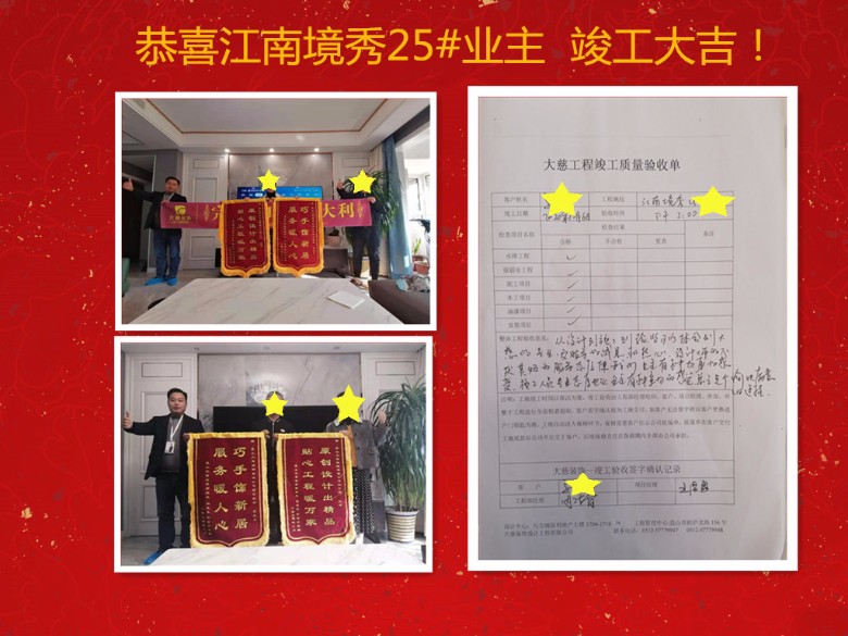 恭喜江南境秀25栋 的业主竣工大吉!