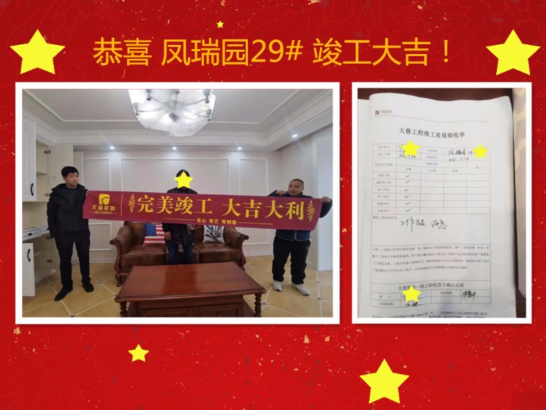 2021年1月31日,大慈装饰全体员工热烈祝贺业主竣工大吉!