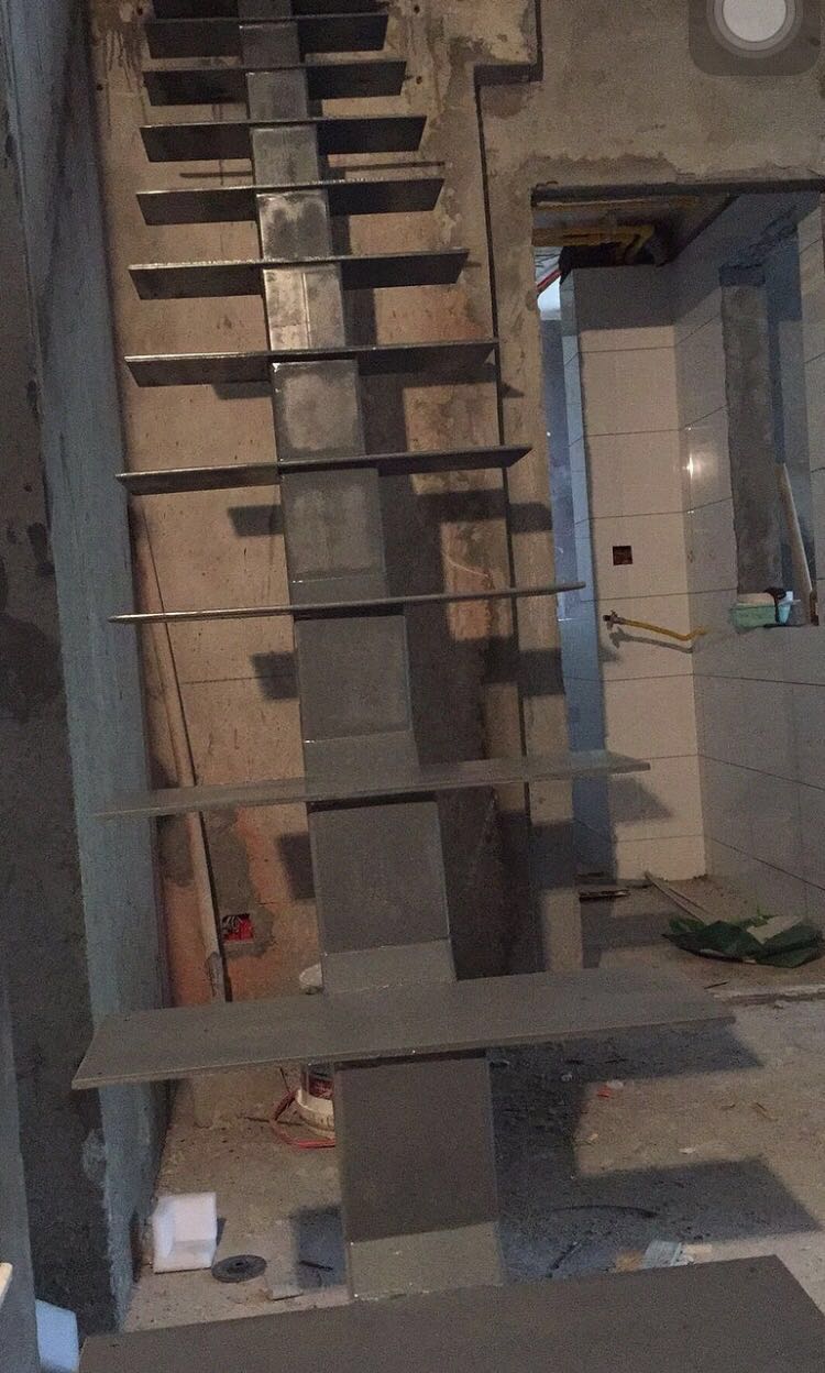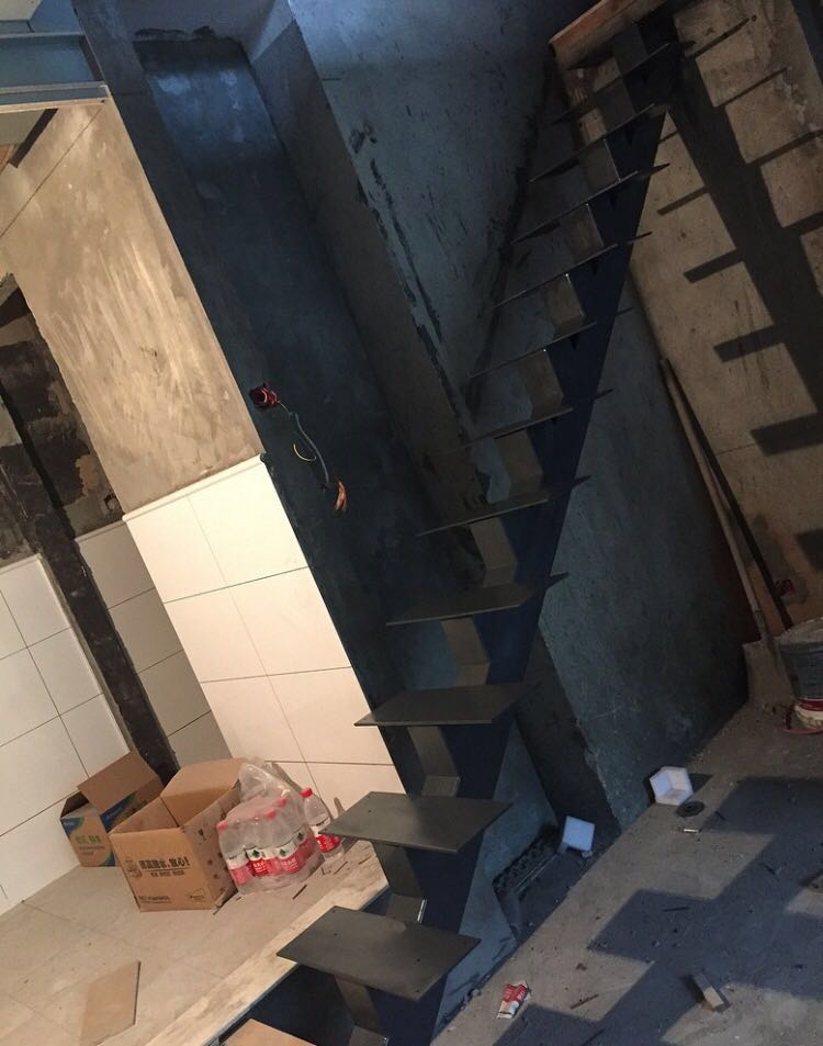 楼梯安的是钢木楼梯的钢架,钢架很重,和安装师傅一起安