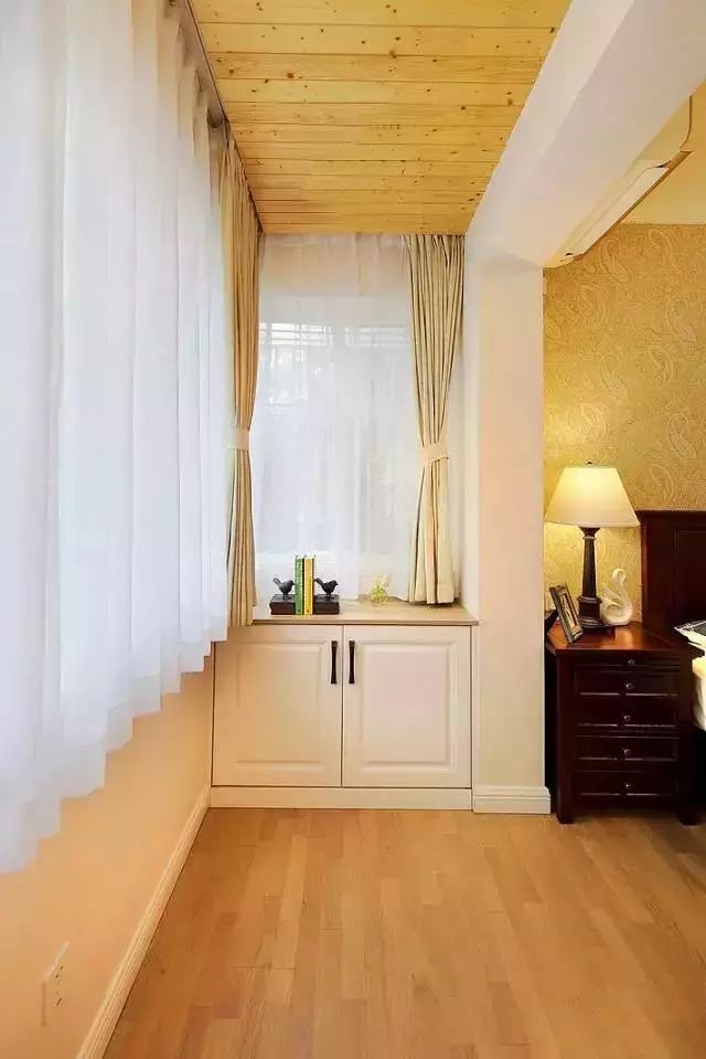 基本上我们看到的阳台地柜有两种呈现形式,一种是在阳台两侧做,这种方法一般比较适合两侧也为窗户的阳台。