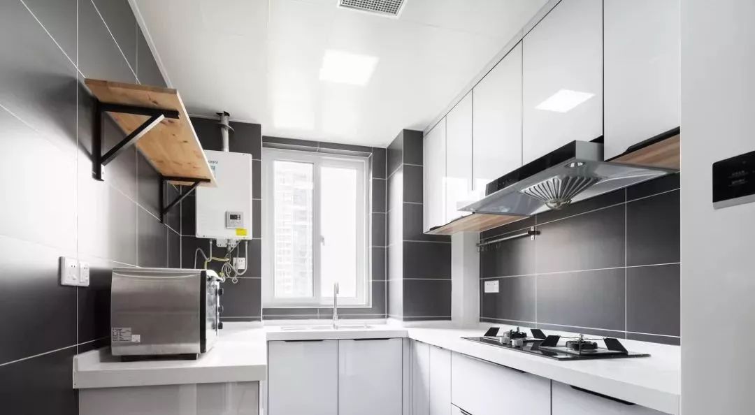 厨房吊顶结束之后再安装橱柜,吊顶安装结束后厨房的高度才真正确定下来,可以根据总的高度适当调节吊柜的高度,兼顾吊柜使用的便利性和整体美观;