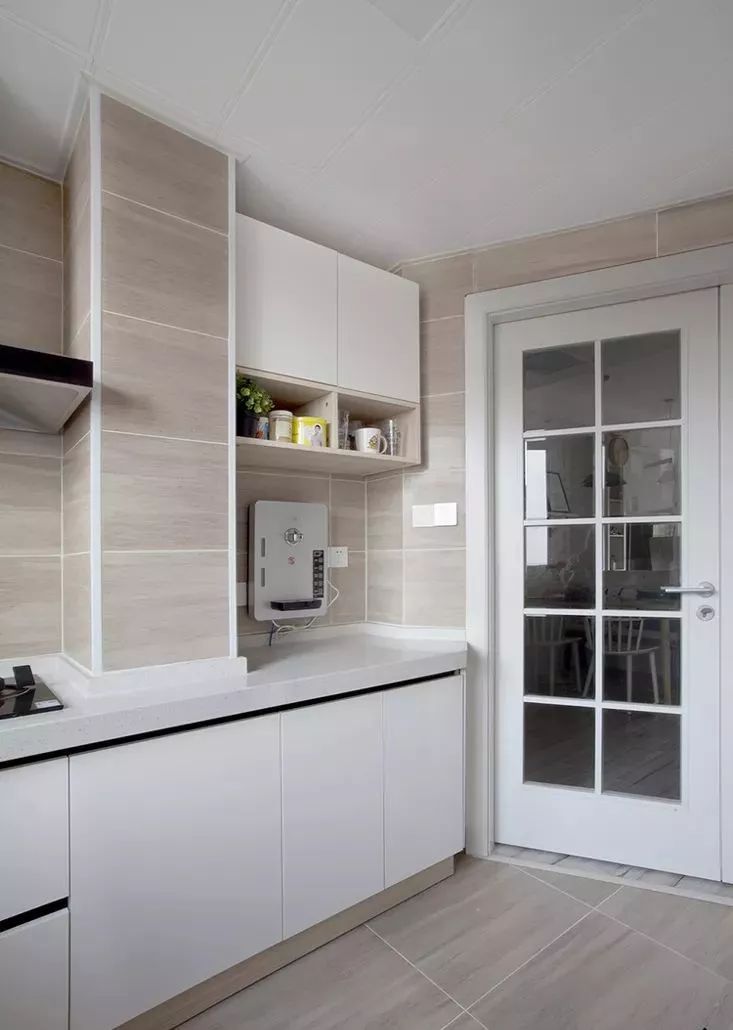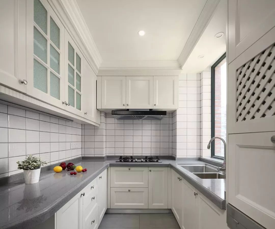 纯白可能有些单调,这个时候可以用局部亮点来点缀:餐具、台面、电器、花卉都是搭配利器。后挡板也有无限创造性,大理石,花砖、马赛克……你想得到的都可以用得上。